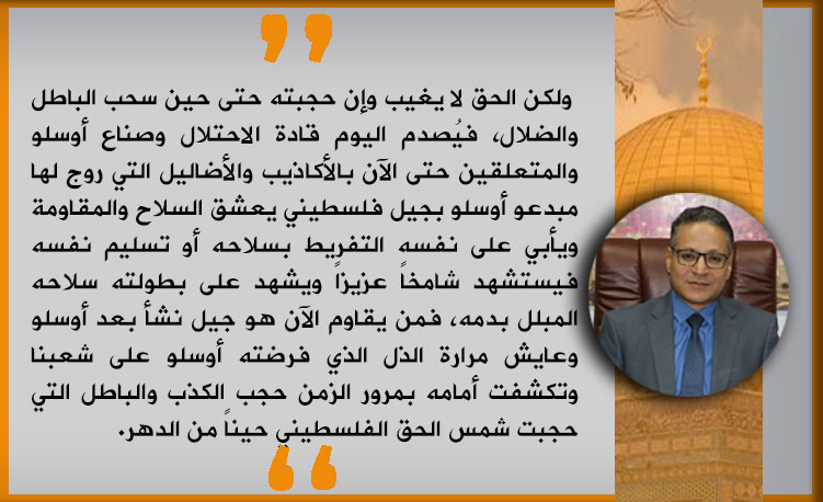 اتفاق إعلان المبادئ حول ترتيبات الحكم الذاتي الشهير باسم اتفاق أوسلو، رُوج على أنه اتفاق سلام سيفضي إلى دولة فلسطينية على خطوط الرابع من حزيران لعام 1967، أي الأراضي التي احتلتها إسرائيل عام 67 وهي الضفة الغربية وقطاع غزة، وفي سبيل الوصول إلى هذه "الكذبة"