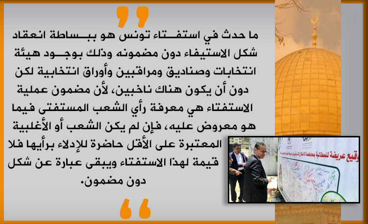 تصور أن يعقد أحدهم مؤتمراً علمياً ليناقش مسألة عليمة دقيقة ويدعو لذلك مائة عالم بعد أن جهز القاعة ووسائل الإعلام والضيافة اللازمة، ثم يبدأ المؤتمر فلا يحضره إلا عشرون عالماً ممن يتبنون رأياً واحداً في المسألة التي سيناقشها المؤتمر، ورغم ذلك يصدر بيان المؤتمر ب