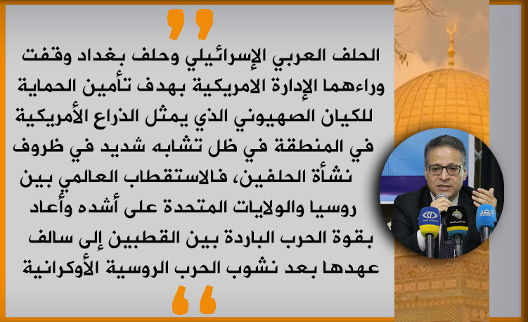 بتاريخ 24 فبراير عام 1955م أُعلن عن حلف يسمى "حلف بغداد" ضم في عضويته كلاً من بريطانيا والعراق وتركيا وباكستان، وقد كانت الولايات المتحدة الأمريكية الراعي الأساسي لهذا الحلف رغم عدم انضمامها رسميّاً له، وكان الهدف المعلن لهذا الحلف هو الوقوف بوجه المد الشيوعي